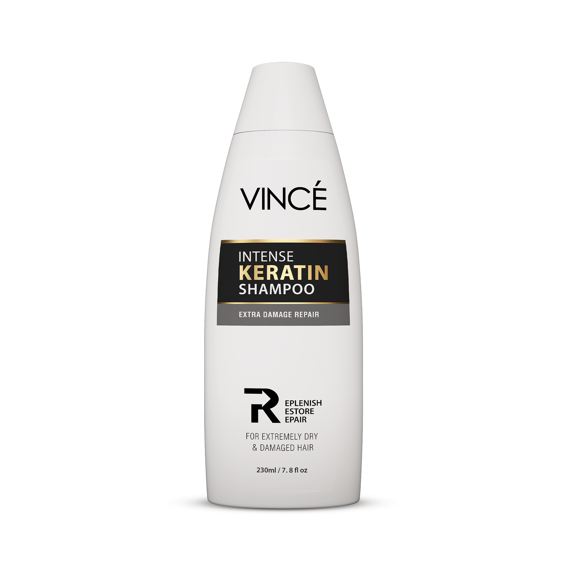 Vince Intense Keratin Shampoo is an exclusive blend of keratin protein that helps to repair damaged hair to reveal healthy hair. It assists to revitalize extremely dry & limp hair also helps in rebuilding the structure of hair by filling porous spots in cuticles with proteins.